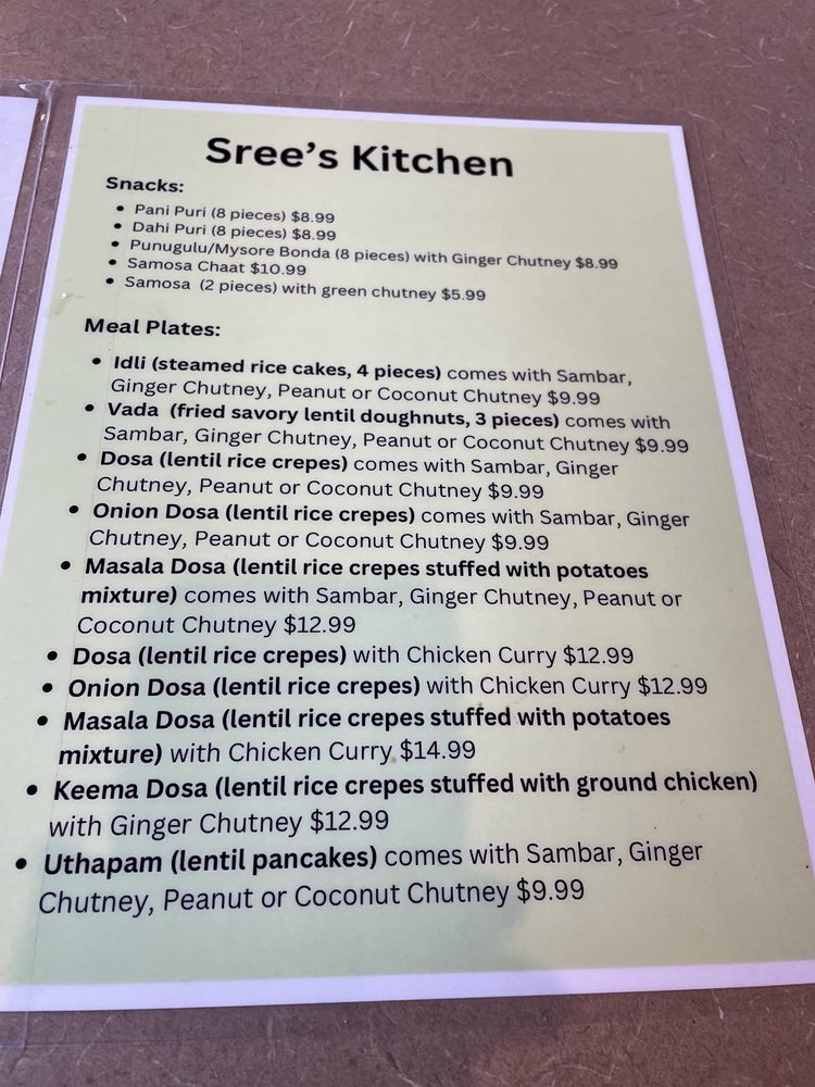 Srees Kitchen Menu (Update 2025)